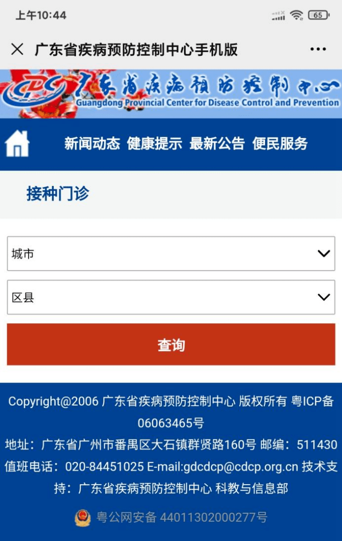 下圖為廣東省疾病預防控制中心(手機版)的官方頁(yè)面