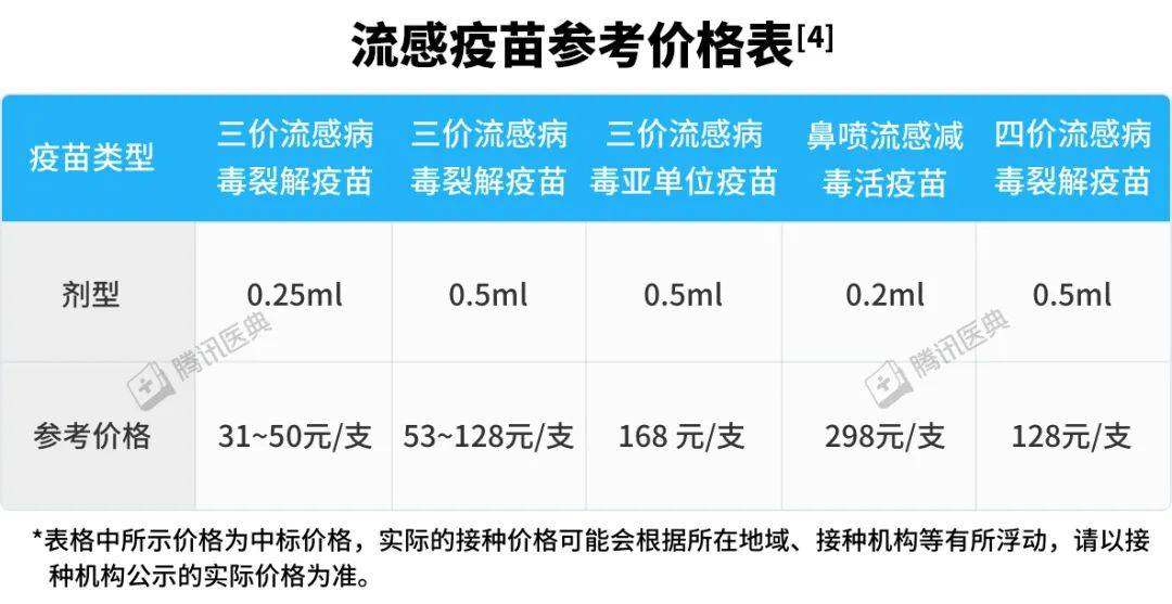 如果你不屬于可免費接種的人群范圍,也可以參考下方的表格打疫苗: