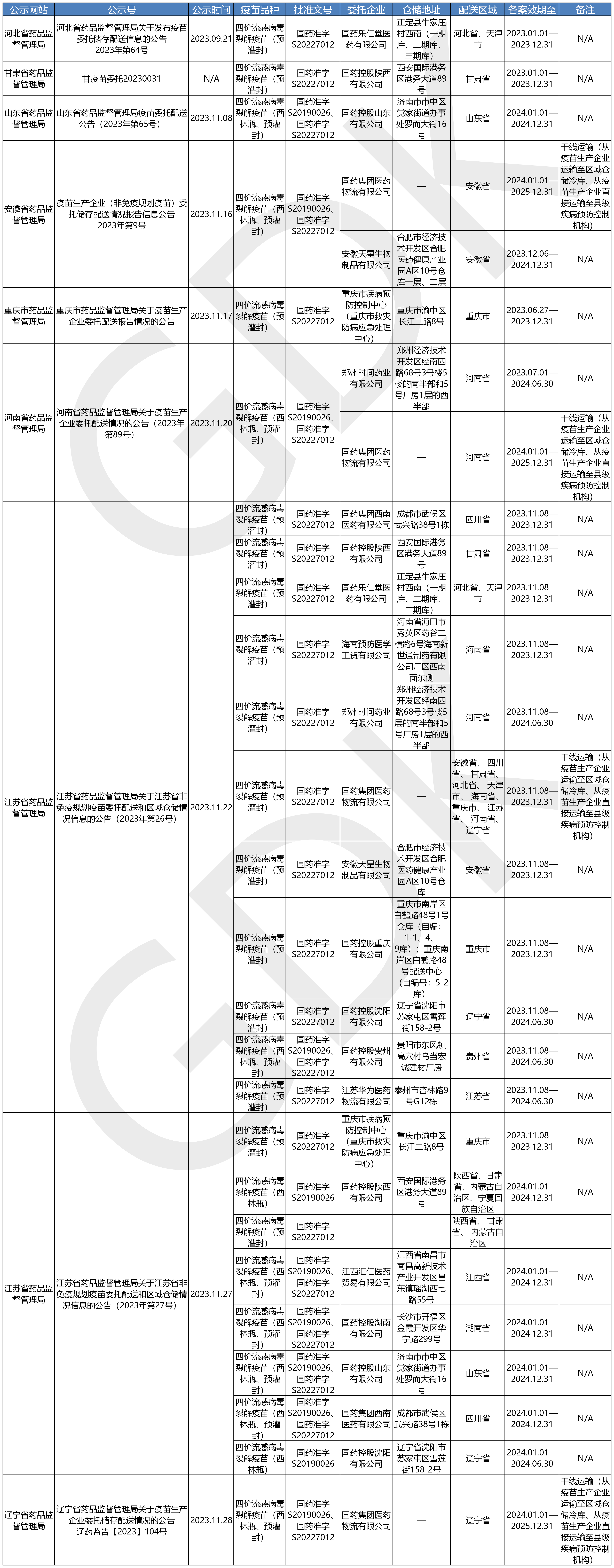 疫苗委托冷鏈儲存、配送企業(yè)信息公開(kāi)