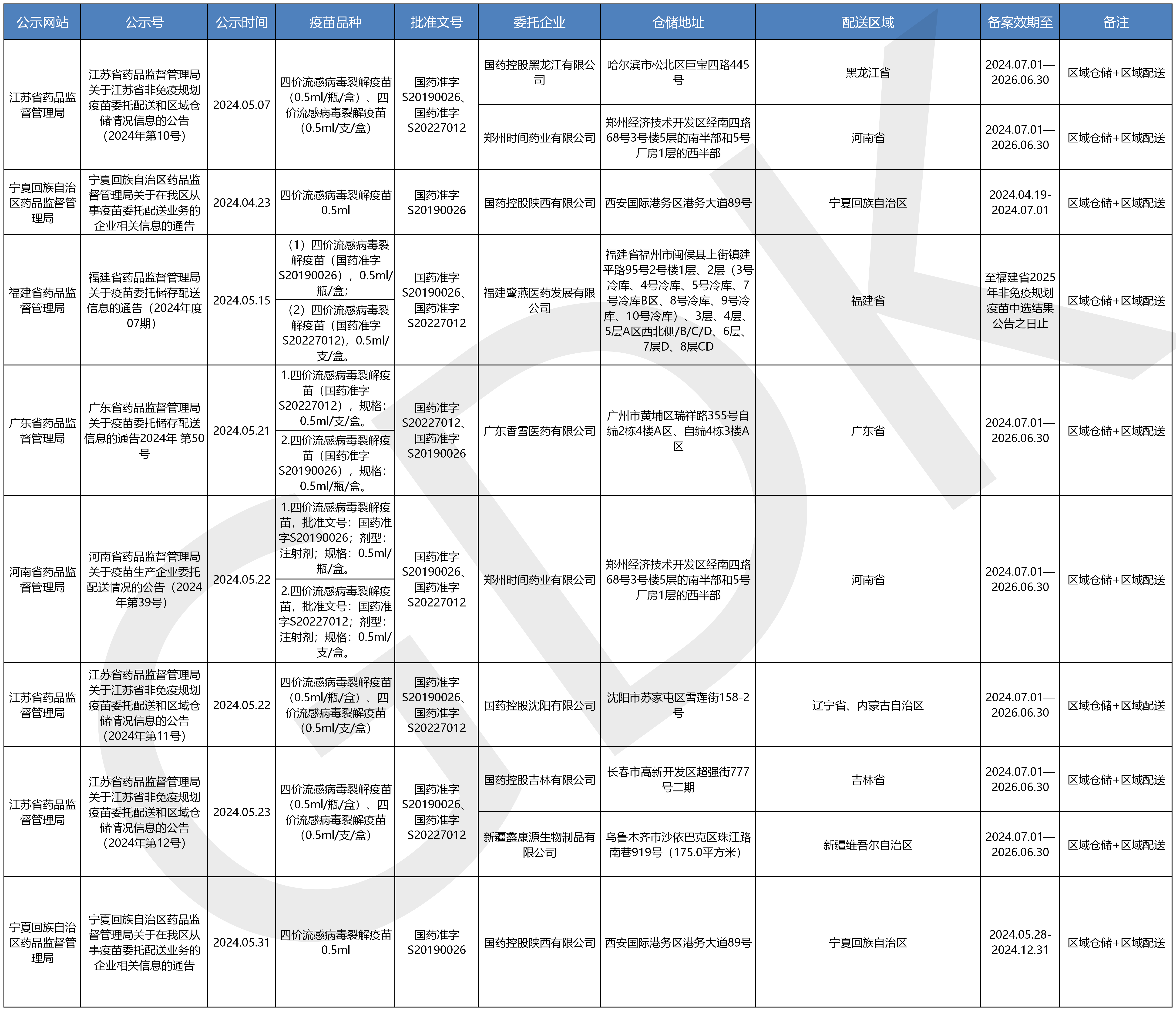 疫苗委托冷鏈儲存、配送企業(yè)信息公開(kāi)