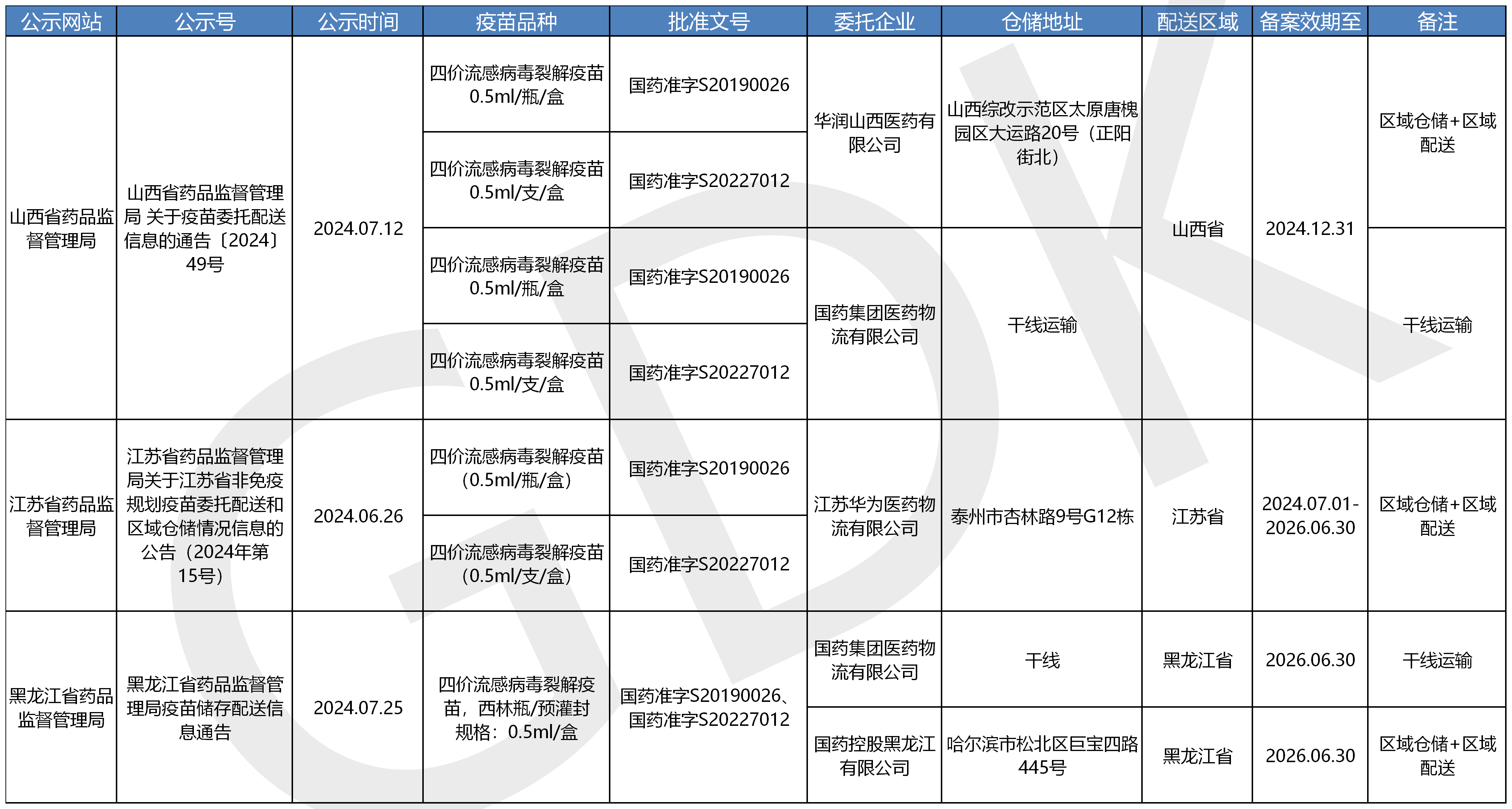 疫苗委托冷鏈儲存、配送企業(yè)信息公開(kāi)